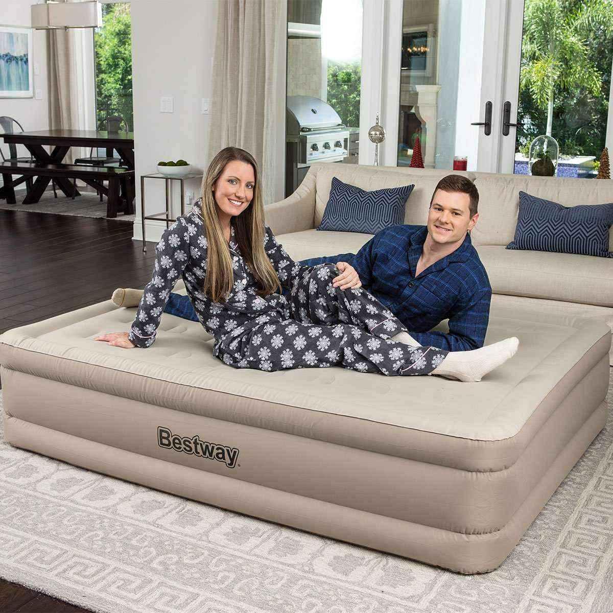 This Bestway Queen Comfort Elevated Airbed with Built In Pump is crafted from Fortech™ fibre which is a fusion of dense polyester fabric with durable polyvinyl chloride (PVC) and acrylonitrile butadiene styrene (ABS) which maintains strength, durability and comfort all in one. Fortech™ material is 75% more puncture resistant, 150 times more abrasion resistant and 10% lighter compared to an equivalent sized vinyl airbed, providing a soft and supportive sleep surface. The sturdy coil beam construction and unique solid rib frame design provides enhanced support throughout the night. There is a built-in electric air pump with power supply of 220 - 240 voltage which inflates the airbed within 5 - 10 minutes. This airbed is great for indoor use and includes a carry bag for easy transportation and storage.