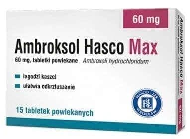 The active substance contained in the medicinal product Ambroxol Hasco Max, i.e. ambroxol hydrochloride, increases the secretion of mucus in the respiratory tract, thanks to which it facilitates expectoration and soothes cough. The drug is indicated for use in acute and chronic lung and bronchial diseases in which mucus secretion is disturbed and its transport is impaired.