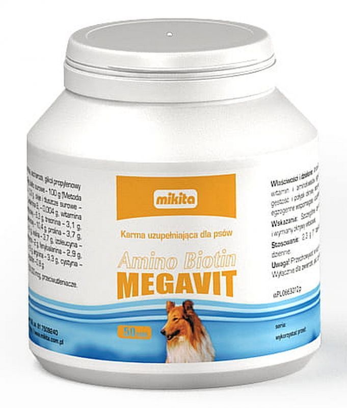 Mikita Mega Vit Amino Biotin is especially recommended for dogs during the period of formation and replacement of the coat or after skin and fur diseases.