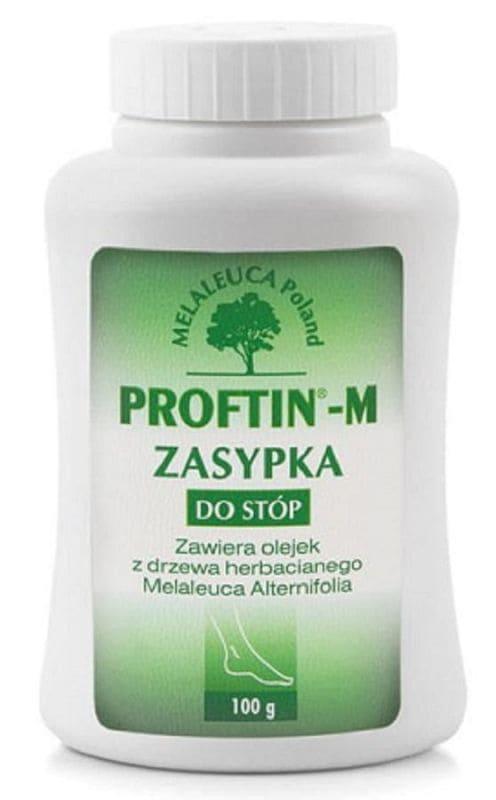 - Proftin G anti-fungal foot powder, contains tea tree oil, which has strong antibacterial properties and is a natural remedy for inflammation and skin infections. The powder prevents excessive sweating of the feet.