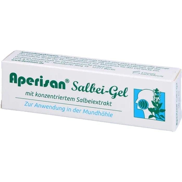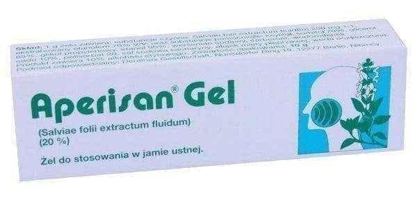 - Aperisan gel is a medicinal product containing a liquid extract of sage leaves. The preparation APERISAN gel is indicated for the symptomatic treatment of oral inflammation. The product APERISAN gel is recommended for adults.