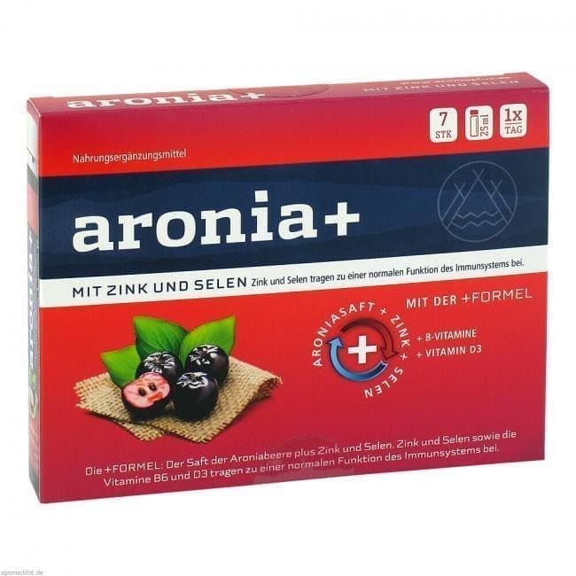 Drink the contents of one drinking ampoule (= daily portion) after any meal. The recommended daily portion should not be exceeded. Shake the drinking ampoule well before use, consume quickly after opening. If you have a sensitive stomach or if you want to soften the tart, strong taste, you can dilute aronia+ IMMUN with 150 to 200 ml of still water.