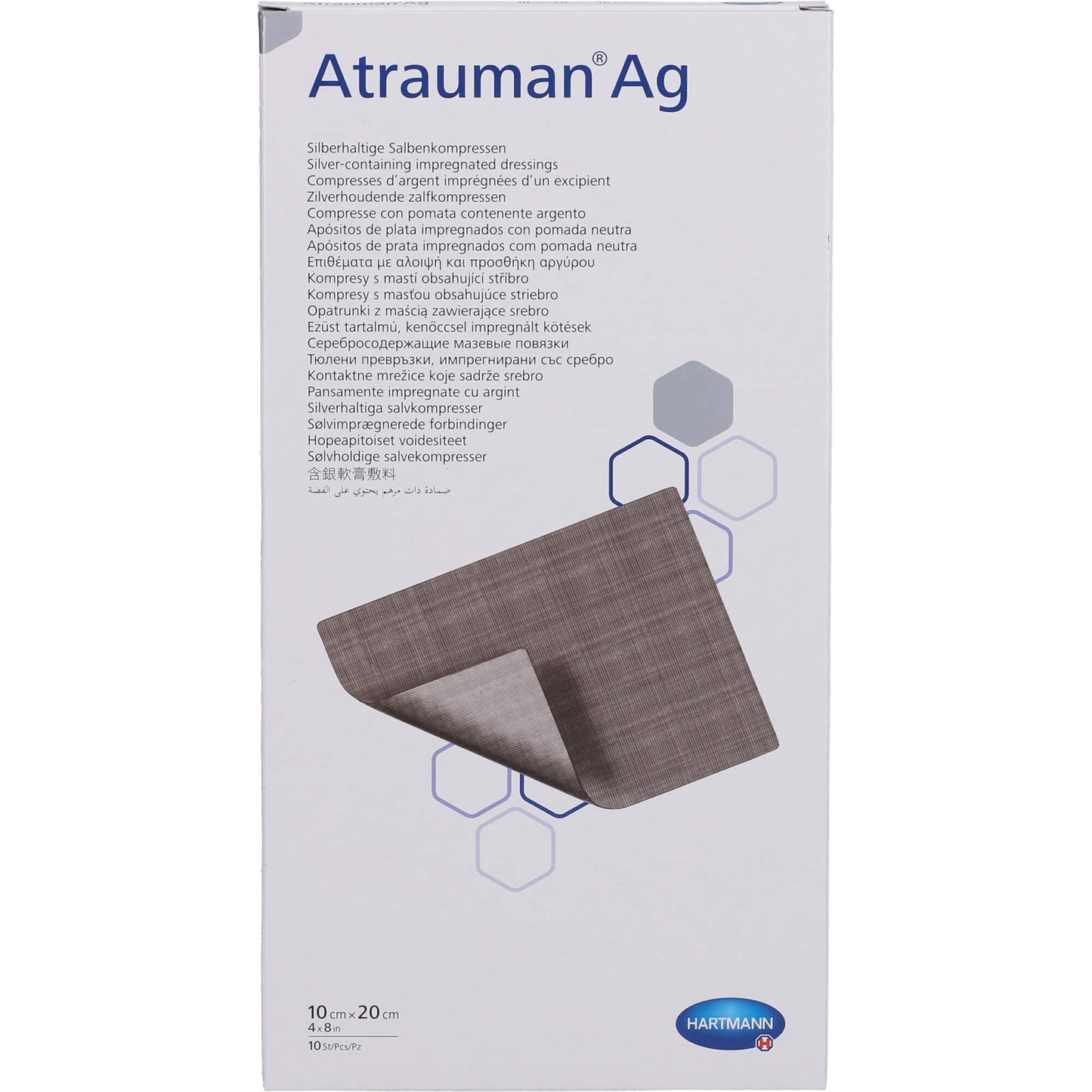 CLAIMED BENEFITS: The soft, thin support fabric drapes easily and ensures close contact with the wound base. The fabric's surface and the impregnation counteract adhesion to the wound; as a result, the dressing supports atraumatic dressing changes. Atrauman Ag acts as a silver-containing barrier dressing.