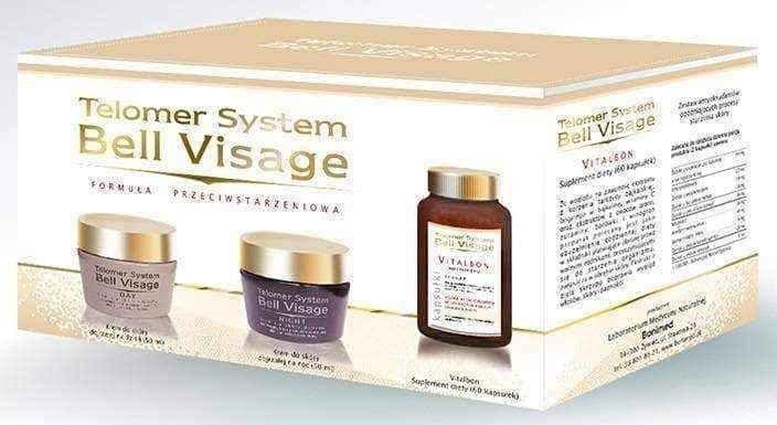 - set for anti-wrinkle skin care! It includes the day cream Telomer System Bell Visage Day, night cream Telomer System Bell Visage Night and the unique dietary supplement Vitalbon, which complements the daily diet with antioxidants.