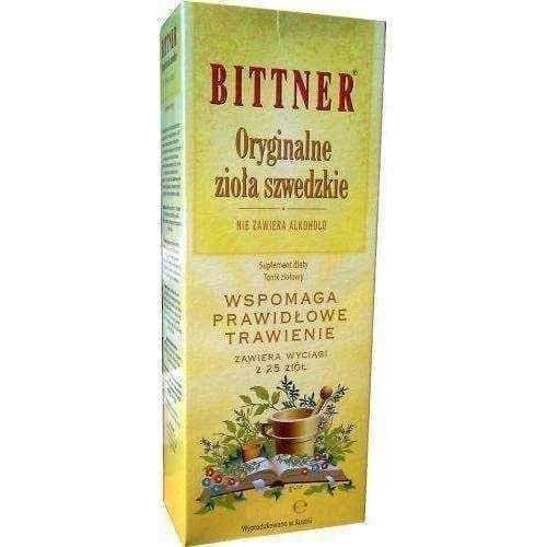 Dietary supplement Original Swedish herbs intended for use as a dietary supplement with herbal extracts helpful, among others. in case of digestive disorders.