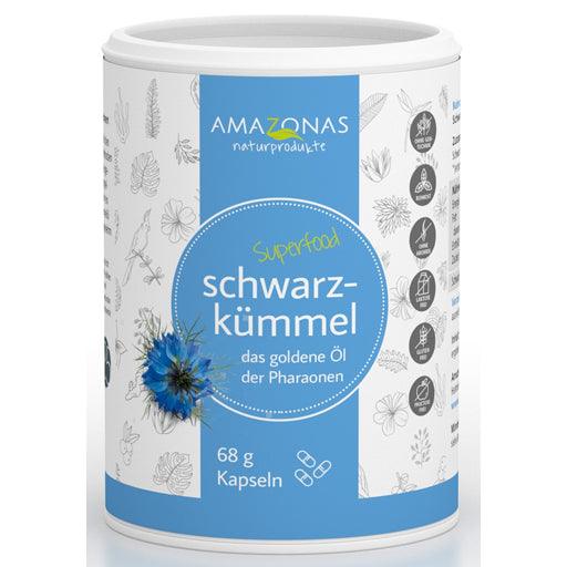 - AMAZONAS black cumin oil capsules contain pure oil from the first pressing with a high proportion of polyunsaturated fatty acids and natural vitamin E.