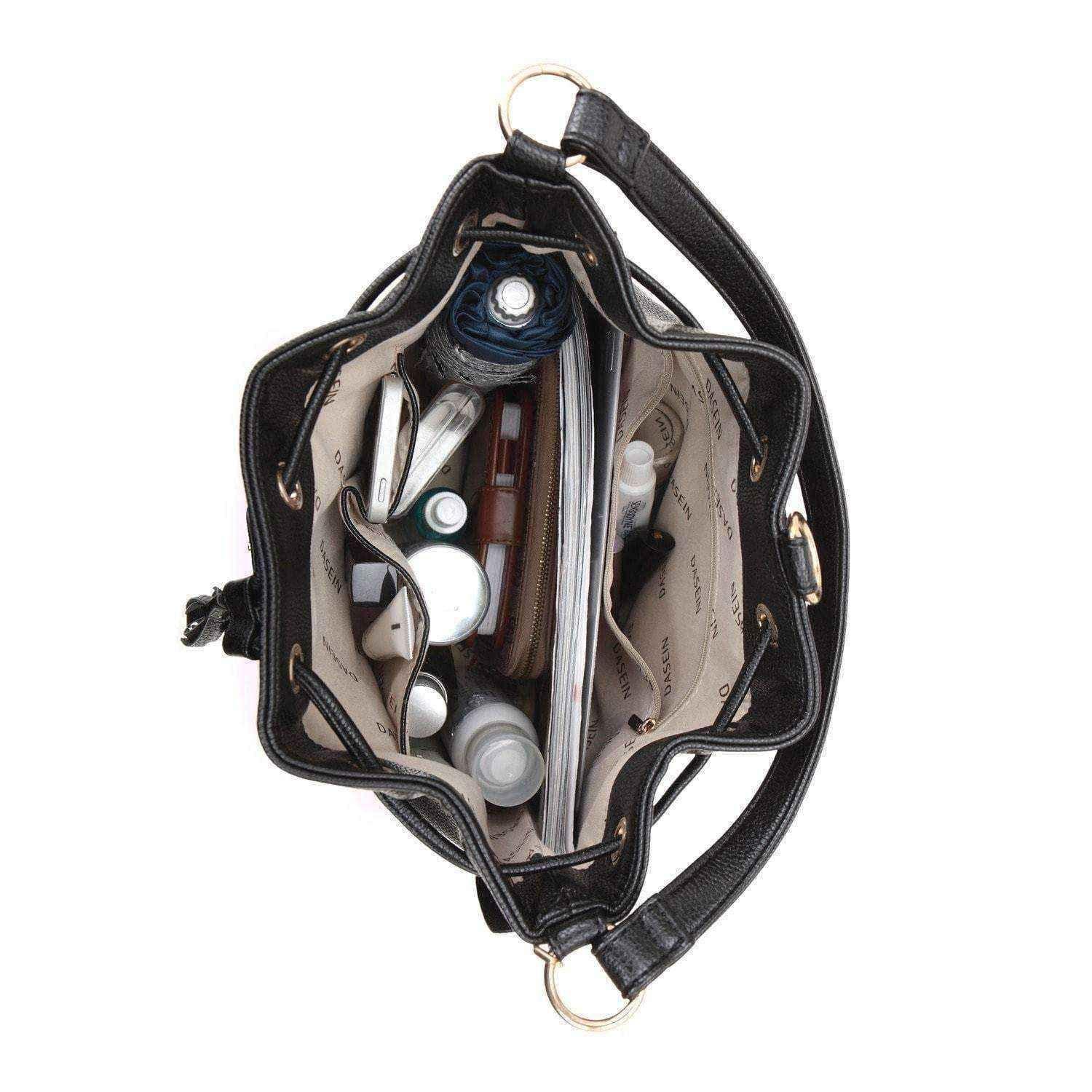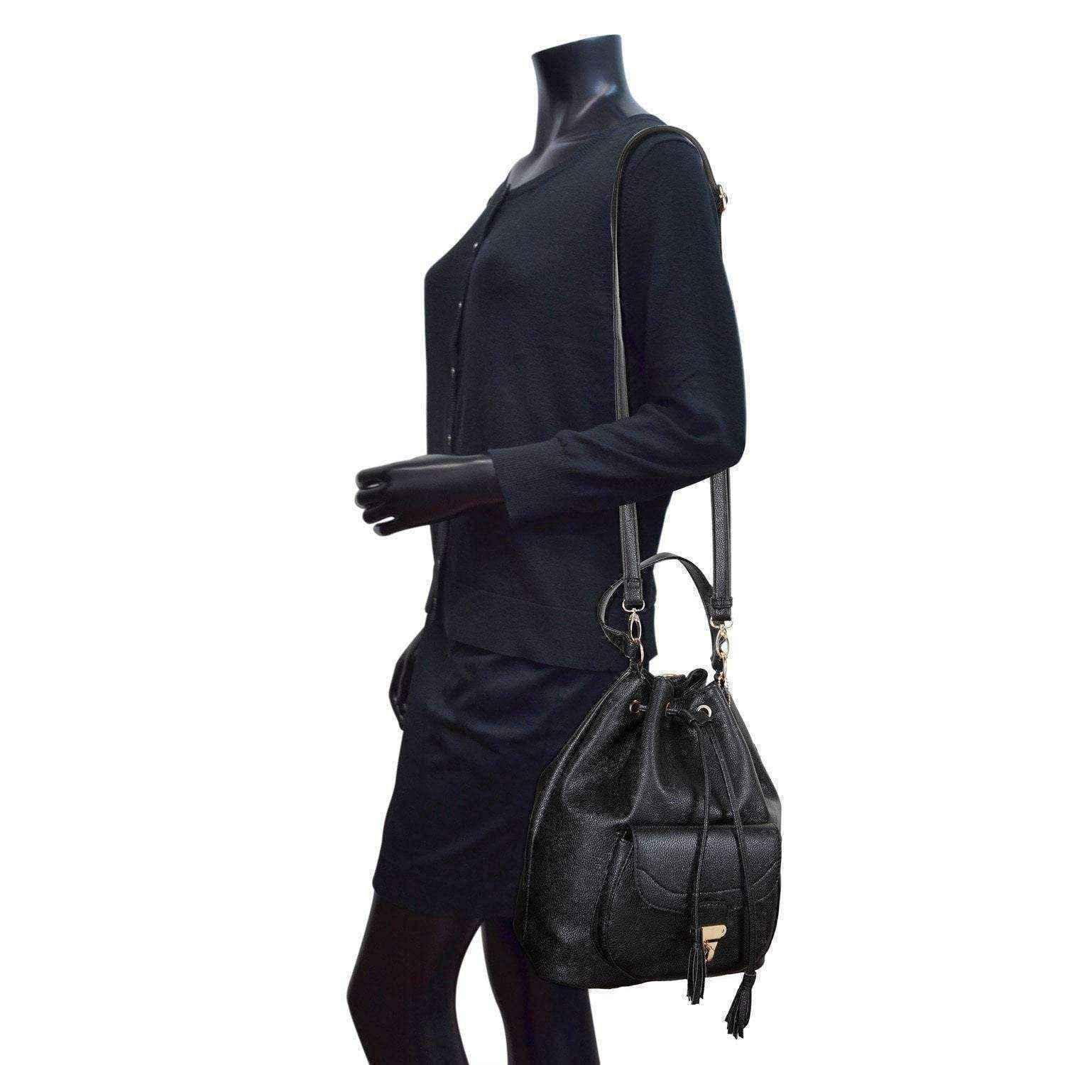 Get your hands on one of the hottest style bags for this season.This trendy bucket bag features interchangeable straps allowing you to carry it over the shoulder or backpack style.
