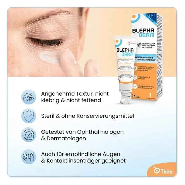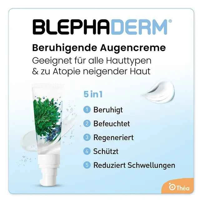 Blephaderm® is a soothing eye cream for the eyelids and eye area, suitable for sensitive, dry, irritated, and atopic-prone skin. It reduces irritation (redness and burning), itching, and swelling.