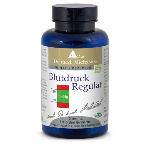 - Blood Pressure Regulat by Dr. med. Michalzik contains OPC, pomegranate, arginine, Q10 and organically bound potassium, which helps maintain normal blood pressure. This effect occurs from 4 capsules per day.