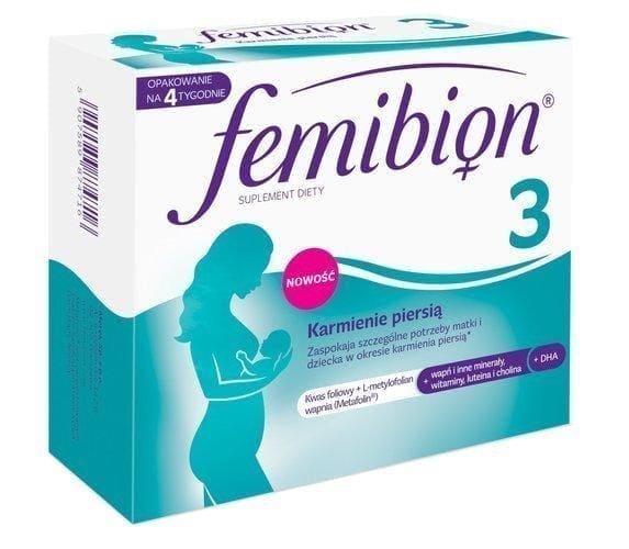 - Ingredients of the dietary supplement Femibion 3 Breastfeeding closed in tablets and capsules. Together, they help to supplement the daily diet of nursing mothers with the nutrients that are increasingly needed during the lactation period.