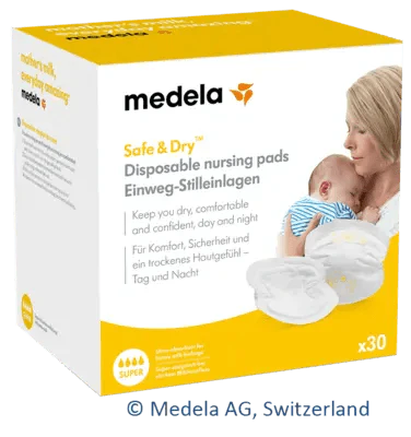 Medela's discreet disposable nursing pads give you a secure feeling and keep your breasts dry for a long time.