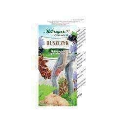 Dietary supplement Butcher intended to be used as a supplement to your daily diet with substances which promote venous circulation in the legs. The product is recommended for people who are struggling with the problem of heavy legs.