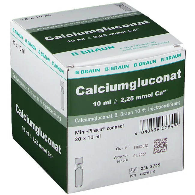 The usual starting dose for adults is 10 ml Calcium Gluconate B. Braun 10% injection solution, corresponding to 2.25 mmol calcium. If necessary, the dose may be repeated depending on the patient's clinical condition. The amount of subsequent doses depends on the current serum calcium concentration.