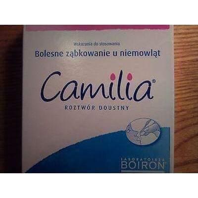 - CAMILIA BOIRON Painful teething in infants 10 LIQUID DOSES 1ML. Teething is a period associated with pain and fever. It is also an experience for parents who want to ease their children 's pain. To alleviate these ailments, Boiron Camilia was created. Homeopathic medicinal product, effective and convenient to use.