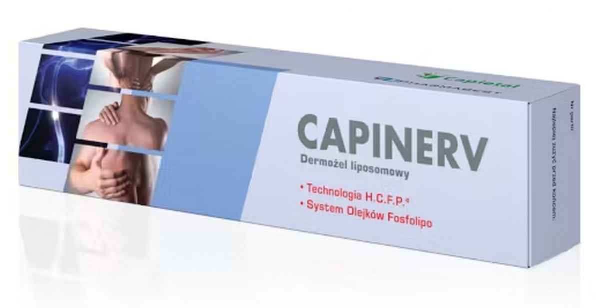 Capinerv Dermogel Liposomal intended for topical use. Contains CBD from hemp leaf extract and selected, concentrated essential oils: hemp seed oil, copaiba balsam oil, clove bud oil, myrrh oil, lavandin oil, rosemary leaf oil, mountain pine oil. It is intended for everyday and long-term use. Capinerv Dermogel Liposomal has a beneficial effect by restoring the integrity of tissues and supporting their return to natural, anatomical continuity. The product should be applied directly to selected areas, gently massaging into the skin. The gel can be used during massage, including relaxation or sports massage, and other physiotherapeutic treatments, e.g. in combination with instrumental-mechanical treatments.