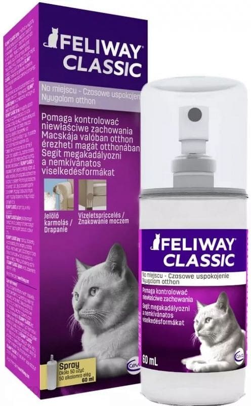 Cat pheromone spray, Feliway Classic. For an overall confidence boost