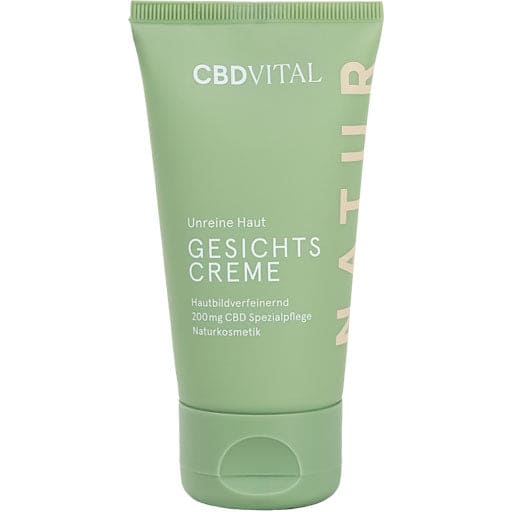 The CBD VITAL face cream for impure skin is a natural combination of cannabidiol (CBD) from hemp and various tried and tested plant extracts in a pleasantly light texture. Cannabidiol (CBD) has many uses. When applied to problem skin, it reduces skin reactions by stabilizing the skin's immune system. CBD shows particularly great potential for impure skin, as it regulates the activity of the sebaceous glands and can thus solve the basic problem of oily skin that is prone to inflammation. Cannabidiol is also known for its regenerative properties.