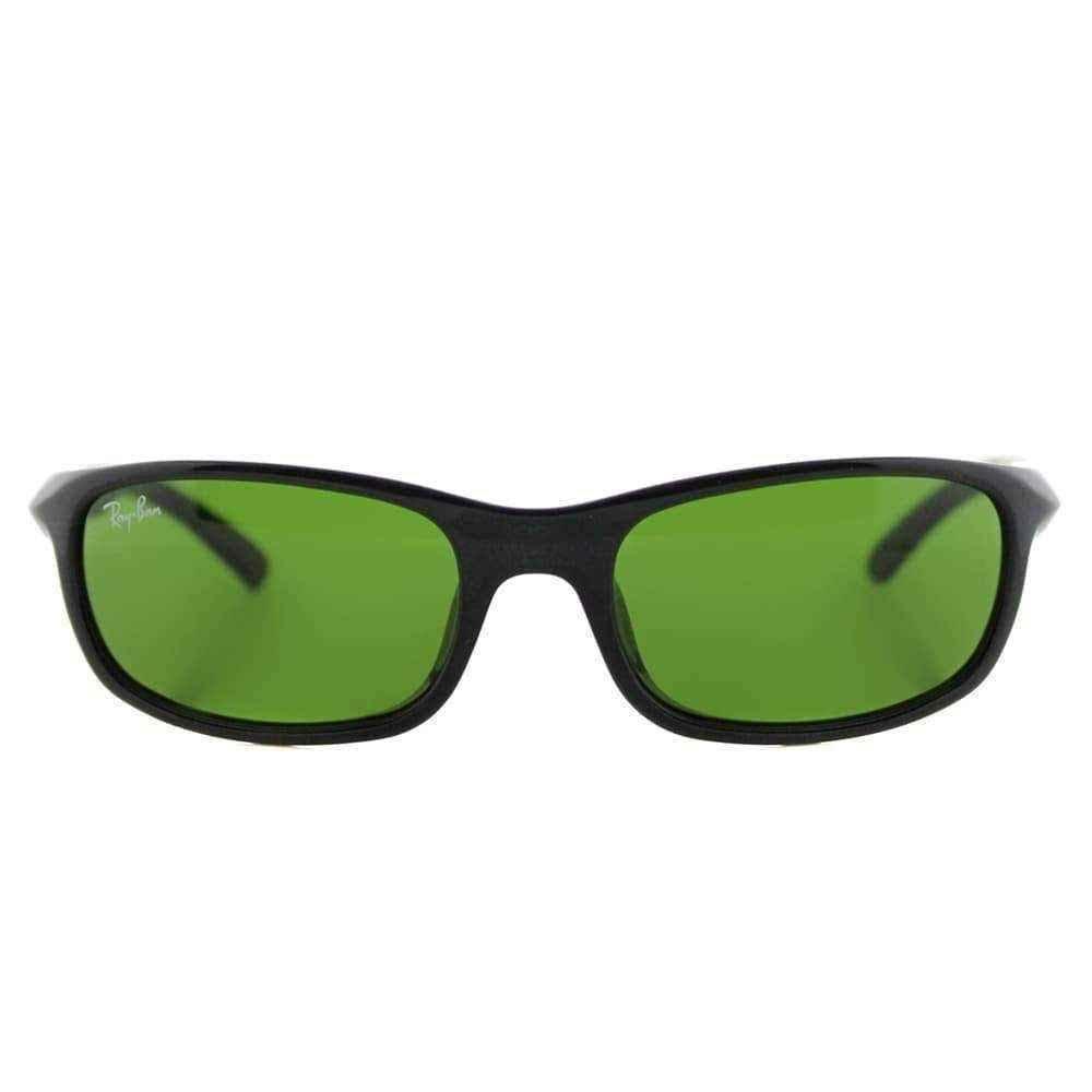 Childrens Ray Ban sunglasses. Shield your child's eyes from harsh sunlight with these plastic sport sunglasses. These shiny black sunglasses have a playful green anti-reflective lens that provides protection against UV rays.