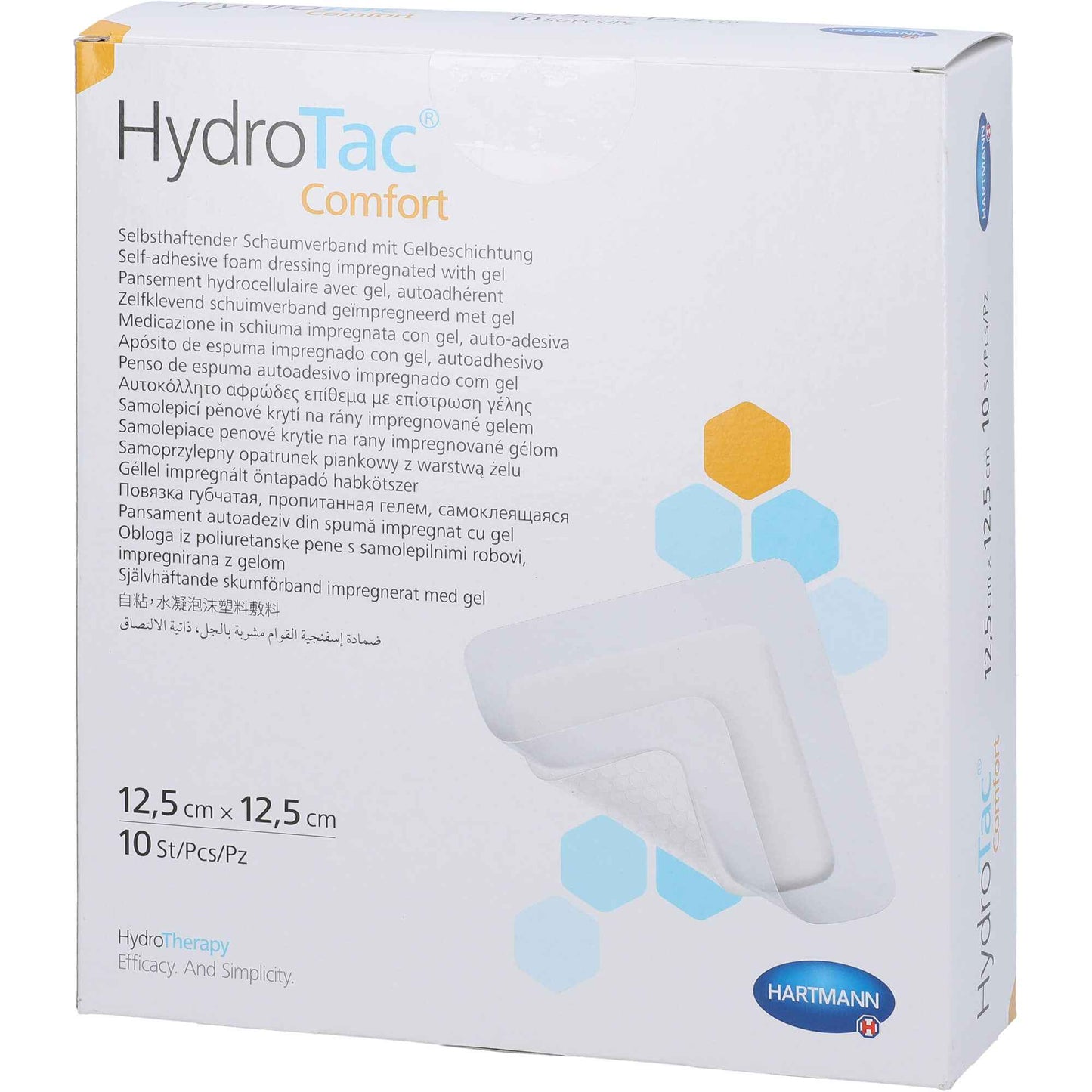 Hydrotac is a foam dressing with a net-like hydrogel layer on the wound side and a water vapor permeable, liquid and germ-tight polyurethane cover film.%%% The absorbent foam quickly absorbs excess wound exudate without drying out the wound.%%% In relatively dry wounds, the hydrogel releases moisture and supports the formation and maintenance of a moist wound environment, which promotes granulation and epithelialization.%%% The wound dressing is soft and supple, has a good cushioning effect and can be removed with little pain.%%% Available in various designs and cuts.