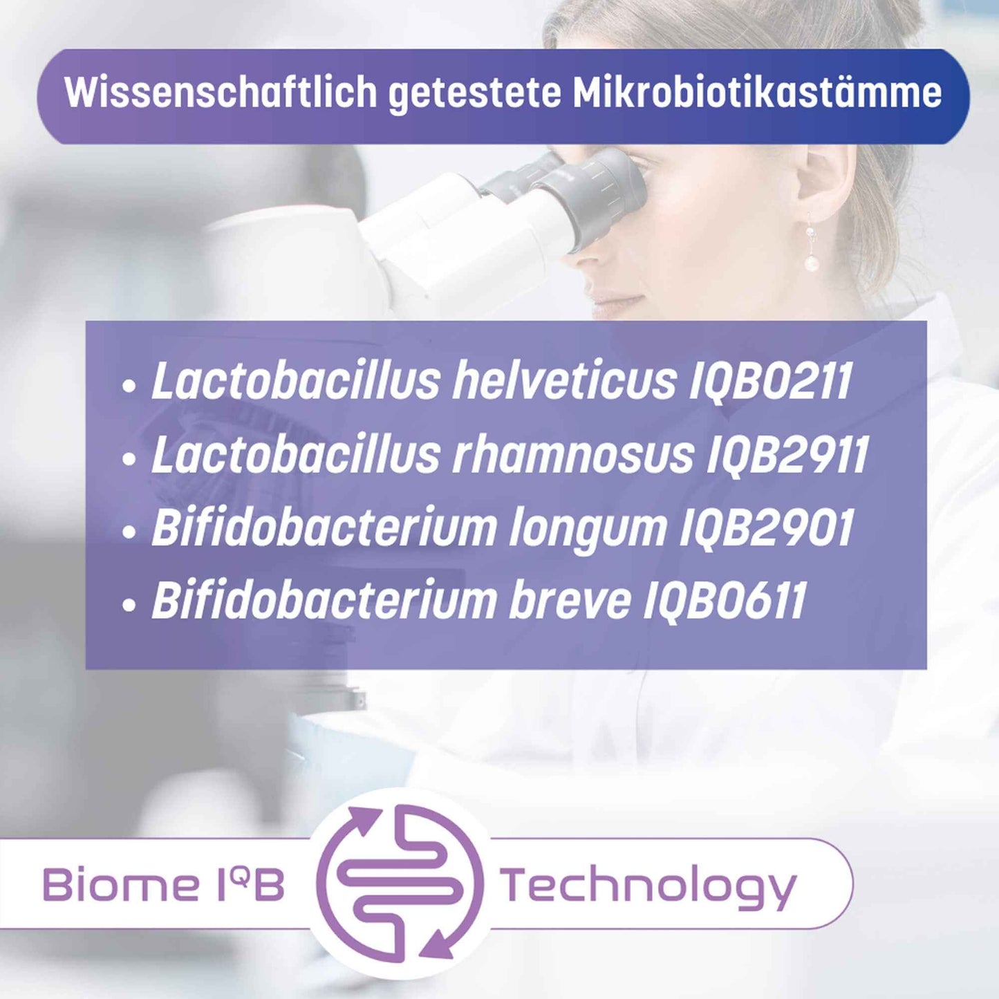- Lactobacillus helveticus IQB0211 - Lactobacillus rhamnosus IQB2911 - Bifidobacterium lungum IQB2901 - Bifidobacterium breve IQB0611 |