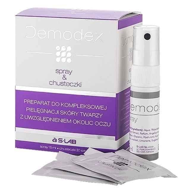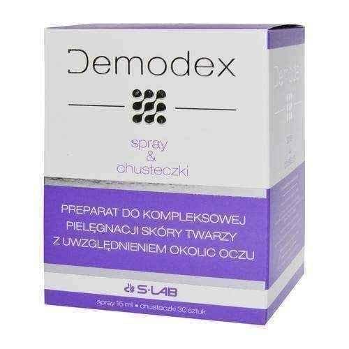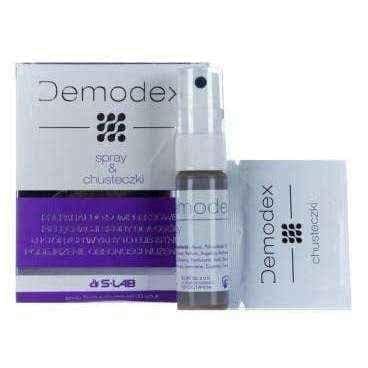 - Demodex Spray. Demodex Spray 15ml + Wipes is a set of products aimed at people with suspected or detected grain mites. It characterized by a cleansing action and relieving irritation. Removes impurities.
