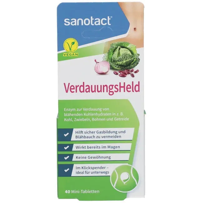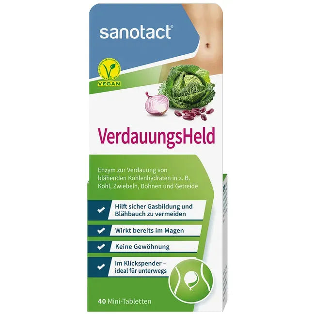 sanotact® Digestive Hero with an enzyme for the digestion of carbohydrates in grains, vegetables and legumes.