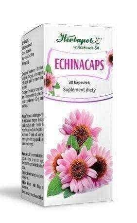 - High quality Echinacea root enclosed in an easy to swallow capsule. The composition of the Echinacaps dietary supplement is complemented by acerola fruit. The preparation is recommended as a support for the proper functioning of the immune system. For adults.