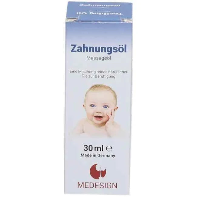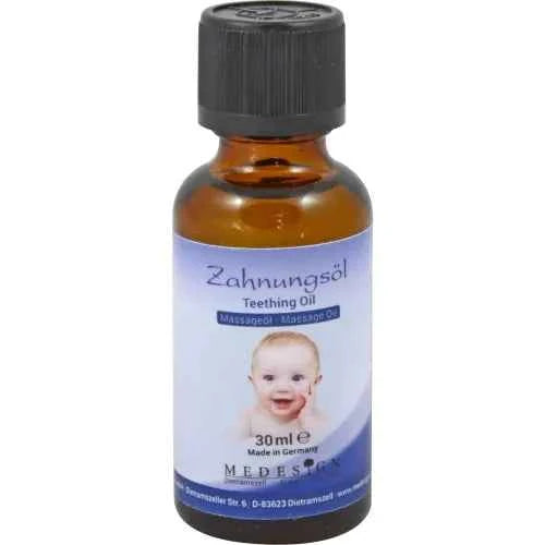 The medesign Teething Oil contains soothing oils (chamomile oil, lavender oil) and soothing oils (clove oil) that help ease your baby's teething process.