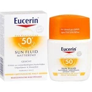 Eucerin sun protection, Eucerin Sun Fluid Mattifying SPF 50+ is an innovative sunscreen for the face, specially developed to protect against sun-related skin damage and pigment spots. For combination skin and oily skin. Waterproof.