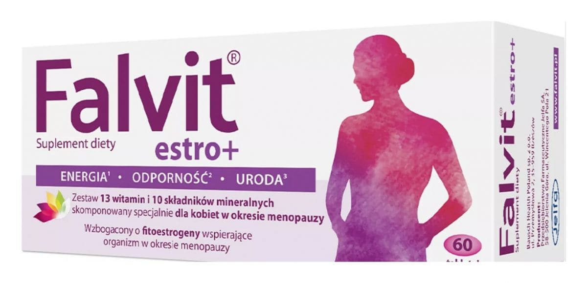 - Falvit ESTRO Menopause supplements, menopause vitamins. Falvit ESTRO + has a unique composition, rich in vitamins and minerals needed for daily supplementation of the female body during menopause. FalvitEstro + helps to endure the unpleasant symptoms of menopause and to maintain a good mood every day.