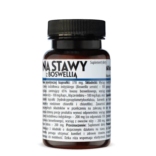 - For joints with boswellia is a dietary supplement intended for adults who want to take care of maintaining healthy joints. The preparation supplements the daily diet with two extracts - from the resin of Indian frankincense and rose hips, and from ginger rhizome.