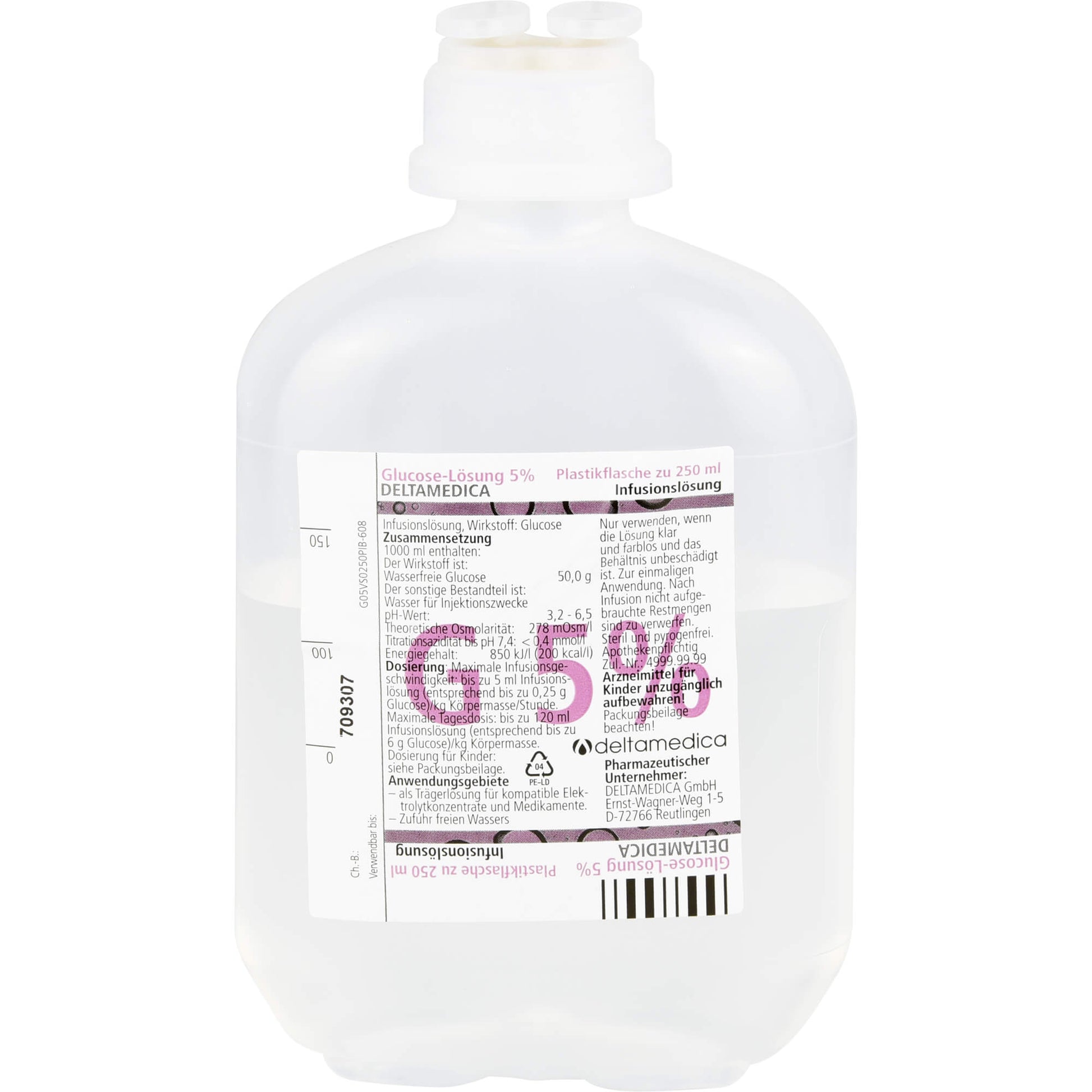 Glucose solution 5% Deltamedica infusion solution. Active ingredient: Anhydrous glucose. Indications: As a carrier solution for compatible electrolyte concentrates and medications. For the supply of free water.