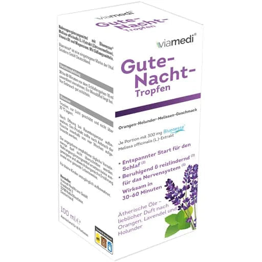 (1) Taken 30 to 60 minutes before going to bed, viamedi® good night drops with lemon balm extract relax the body and mind from the day's work, support mental focus – have a liberating effect from circling thoughts – and set the mood for a healthy night's sleep.