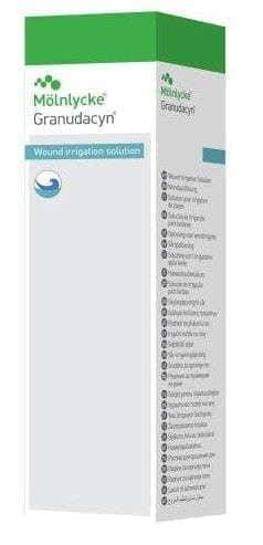 The preparation mechanically removes microorganisms from the wound and also causes their disintegration. Granudacyn wound care solution cleanses the wound and prevents the growth of viruses, bacteria, yeasts and spores. The indication for the use of the preparation is also rinsing the operating field during surgery. The Granudacin medical device is not cytotoxic, its safe formula allows for long-term use.