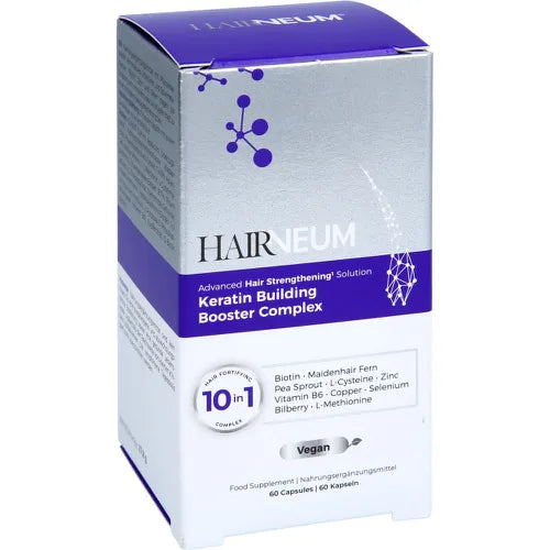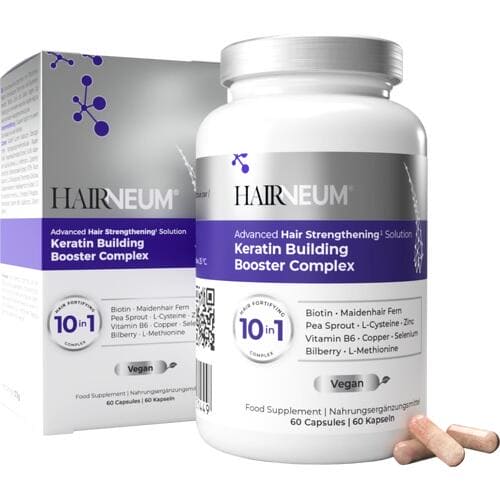 The HairNeum Keratin Building Booster Complex was developed to support the natural hair cycle, growth and longevity of hair. It contains a unique blend of 10 scientifically proven hair-strengthening ingredients in an effective formula: