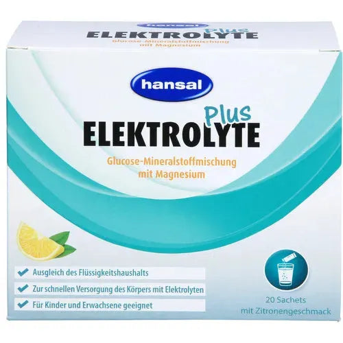 Our product hansal Electrolytes Plus contains the optimal combination of glucose, potassium, chloride and sodium to supplement the fluid balance and absorb electrolytes. Dissolved in water, the drink tastes deliciously of lemon without a salty aftertaste.