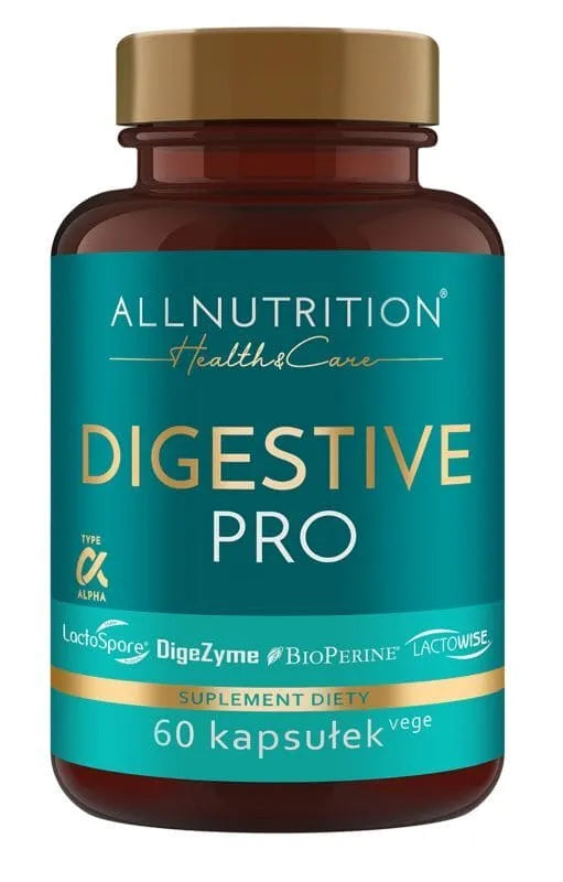 ALLNUTRITION HEALTH & CARE DIGESTIVE PRO is a product from the Health & Care series, distinguished by the highest quality ingredients that work together to create a powerful probiotic formula. This unique preparation contains the brand formulas DigeZyme®, LactoSpore® and LactoWise® - a complex of digestive enzymes and bacterial strains. For maximum effectiveness, the product has been enriched with BioPerine®.