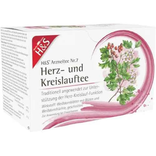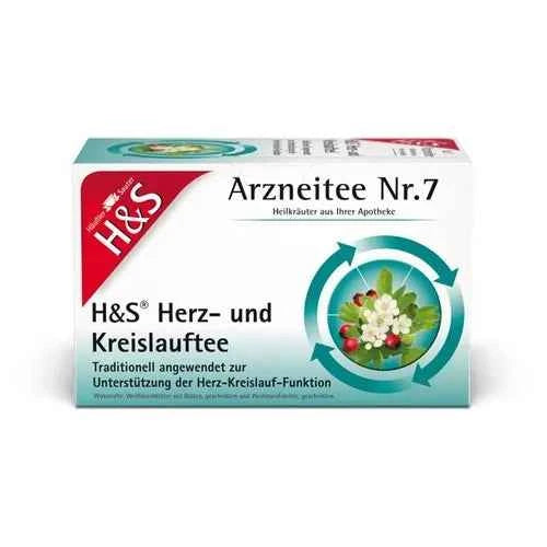 H&S Heart and Circulation Tea. Indications: Traditionally used to support cardiovascular function. This medicinal product is a traditional medicinal product registered exclusively for this indication based on long-standing use. For risks and side effects, read the package insert or consult your doctor or pharmacist. H&S Tee-Gesellschaft mbH & Co. · Heidachstr. 62 · D-88079 Kressbronn/Lake Constance.