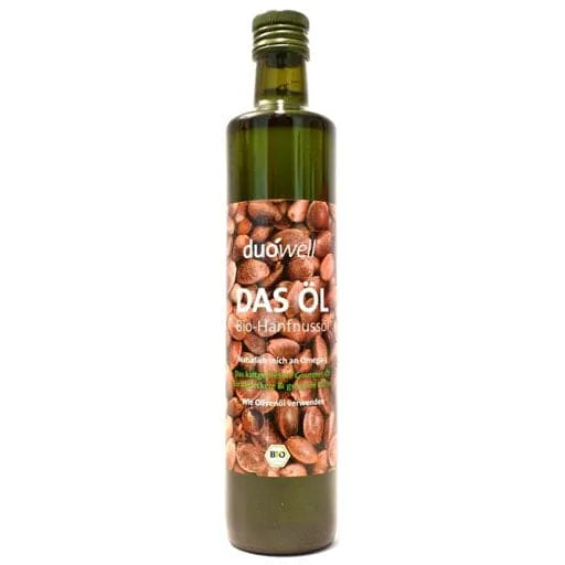 GloboVitas duówell DAS ÖL is extracted in an organic-certified German oil mill using exclusively mechanical processes. After the natural hemp nuts have been dried, the leaves and unripe seeds are first filtered out, then they are gently cold-pressed and the oil is finally bottled in the absence of oxygen. This means that DAS ÖL retains its valuable ingredients during processing. The exceptionally high proportion of unsaturated omega-3 fatty acids (approx. 20 times more than olive oil!) make DAS ÖL a perfect component of your daily diet. Just two tablespoons a day are enough to fully cover your omega-3 needs.