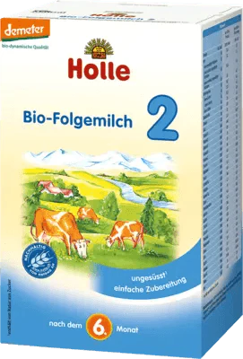 Can be used after breastfeeding, with Holle organic infant milk formula 1 or instead of any other follow-on milk. Part of a mixed diet of bottles and porridge meals. Filling, meets a baby's increasing nutritional needs.