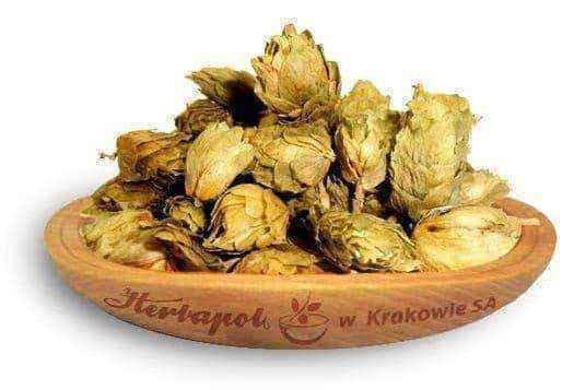 The characteristic flavor of hops cone soothes the nervous system. Herbal tea Hops cones are recommended for drinking problems with falling asleep. In addition, hop cones support the maintenance of adequate cholesterol levels, and also help protect the body's cells from the harmful activity of free radicals. In menopausal women, an infusion of hops helps to relieve the symptoms of menopause, e.g. irritability, anxiety, hot flushes, and sweating.