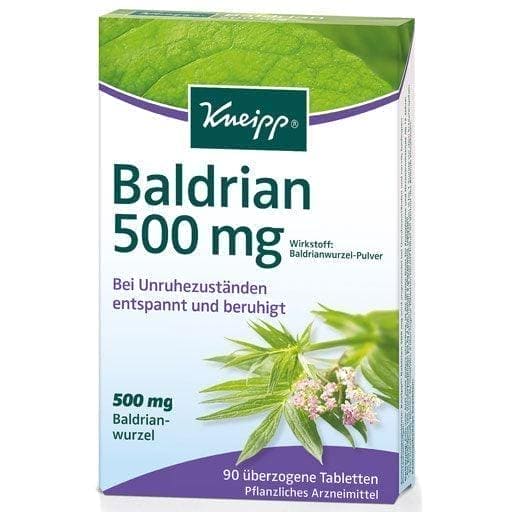 Kneipp® Valerian 500 mg contains the valuable components of the European valerian root. 1 coated tablet contains 500 mg finely powdered valerian root.