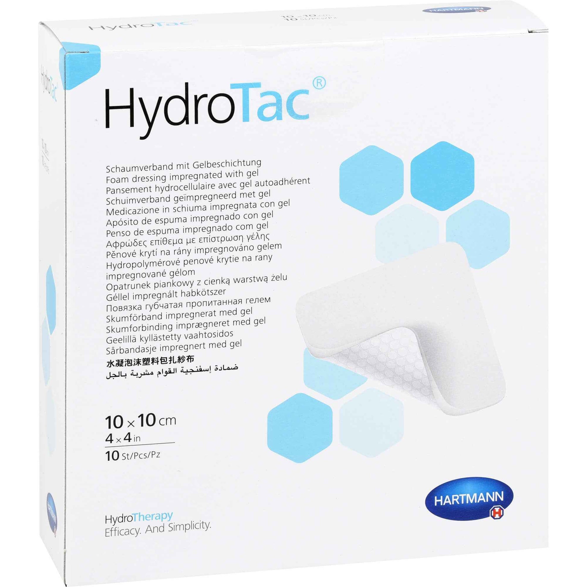 Hydrotac is a foam dressing with a net-like hydrogel layer on the wound side and a water vapor permeable, liquid and germ-tight polyurethane cover film.%%% The absorbent foam quickly absorbs excess wound exudate without drying out the wound.%%% In relatively dry wounds, the hydrogel releases moisture and supports the formation and maintenance of the moist wound environment, which promotes granulation and epithelialization.%%% The wound dressing is soft and supple, has a good cushioning effect and can be removed without pain.%%% Available in various designs and cuts.