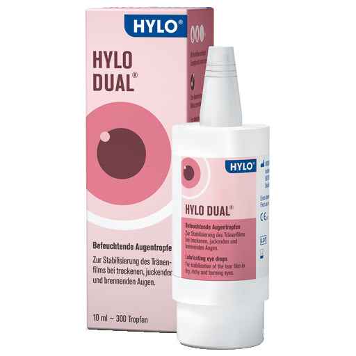 HYLO DUAL ® moisturizes the cornea and conjunctiva and protects against excessive evaporation of the tear film. Eye irritation caused by dry eyes or allergies can be relieved by stabilizing the tear film. The dosage of the eye drops should be determined according to the recommendation of your ophthalmologist. Generally, one drop of HYLO DUAL ® is used three times daily.into the lower eyelid of each eye. If symptoms are more severe or if frequent daily use is necessary, please consult your ophthalmologist.