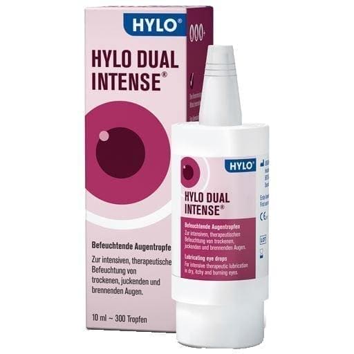 HYLO DUAL INTENSE ® contains 0.2%, a particularly high concentration of hyaluronic acid and is highly viscous. As a result, the eye is supplied with a stable film of moisture in a particularly intensive and lasting manner. With HYLO DUAL INTENSE ® persistent or stronger, even chronic complaints are alleviated and the eye is permanently protected from irritation.