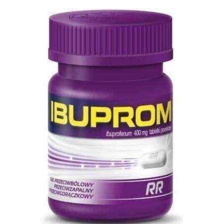 - Ibuprom rr. Ibuprom RR 0.4g in the form of tablets is a medicinal product that contains ibuprofen as an active substance. The drug, thanks to analgesic, anti-inflammatory and antipyretic properties, heals pain of weak and moderate intensity.