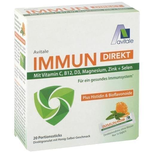 Avitale Immun Direkt contains selected, good dosed vitamins and minerals that specifically support a healthy immune system. These were supplemented by phytochemicals, bioflavonoids and the semi-essential amino acid histidine. Our immune system is challenged every day, especially when there is ongoing stress, environmental pollution and changing weather conditions.