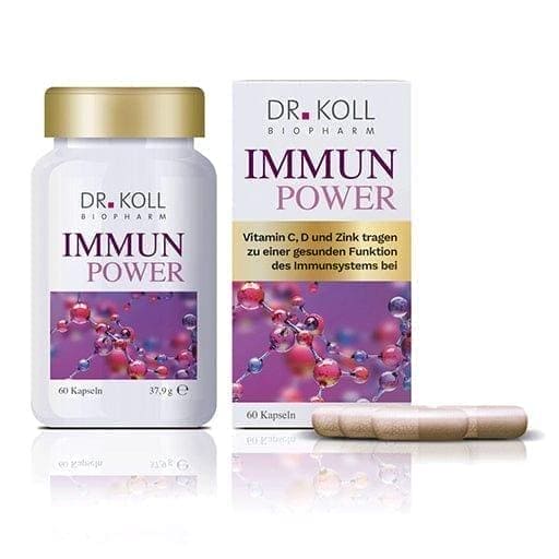 IMMUN POWER Dr. Koll is a dietary supplement with bacterial strains, rosehip fruit extract, trans-resveratrol, astaxanthin, zinc and vitamins. Vitamin D, vitamin C and zinc contribute to a healthy functioning of the immune system.