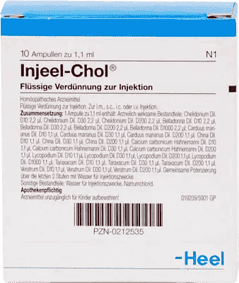 Due to the components Chelidonium majus (celandine) and Veratrum album, do not use during pregnancy and breastfeeding. Injeel-Chol should not be used if there is a known hypersensitivity to Silybum marianum (milk thistle) or other composite plants.