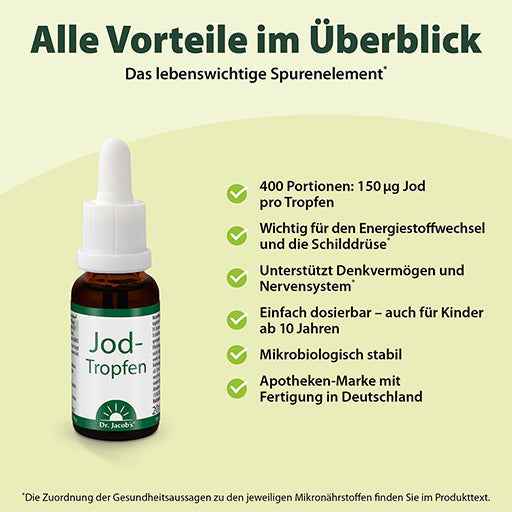 The iodine contained in iodine drops can make a scientifically proven contribution to the health of the following normal bodily functions:
